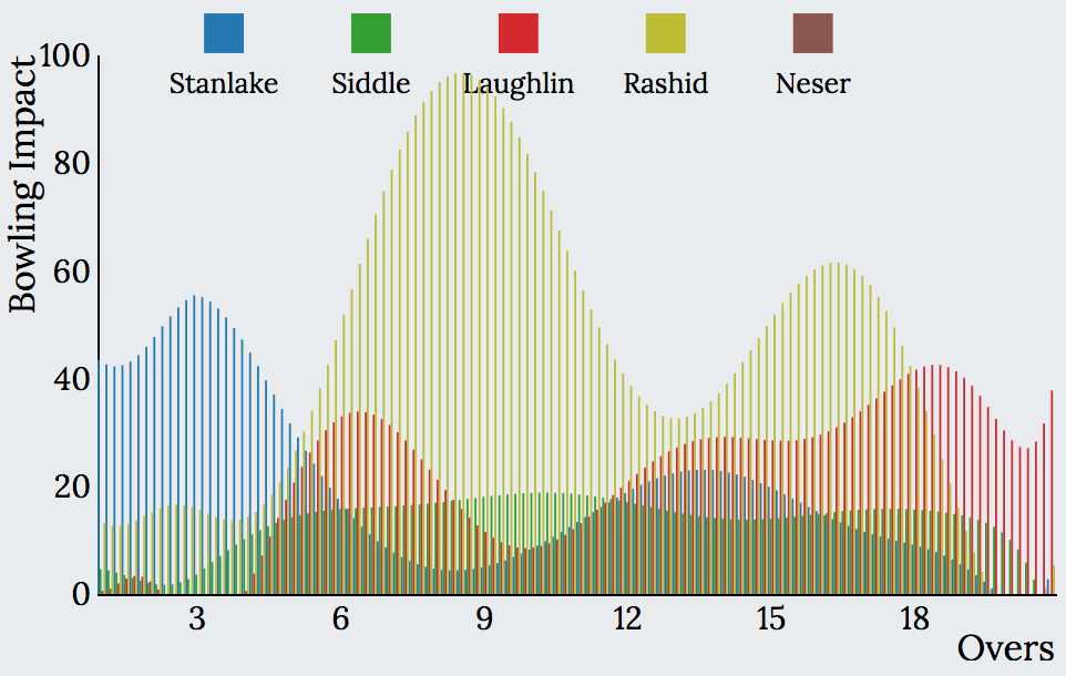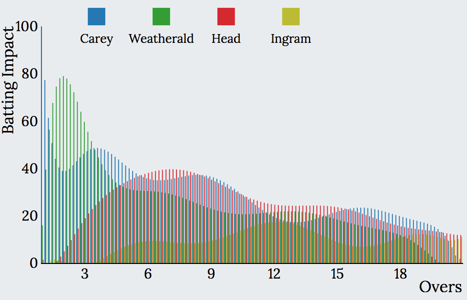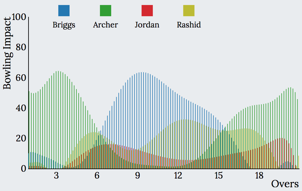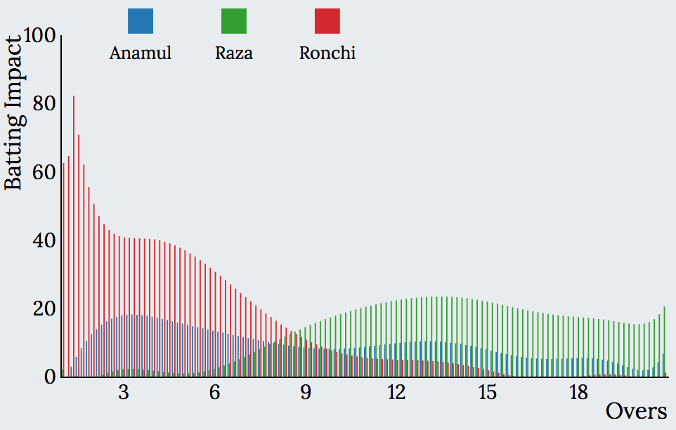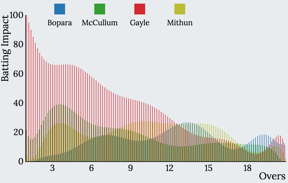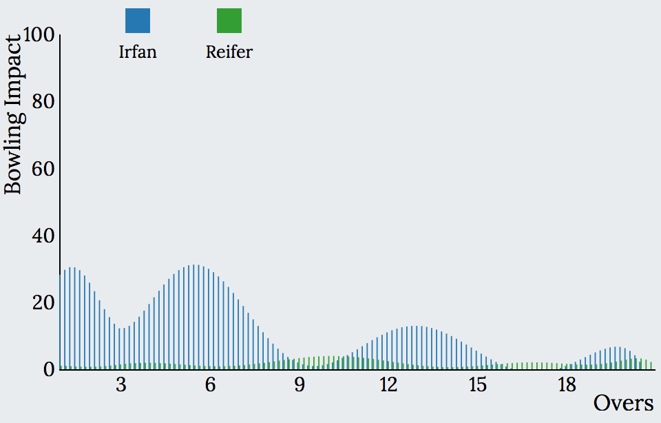 Explore the interactive graph below to visualise the batting and bowling impact charts and see your favourite team’s Impact during different phases of the game.