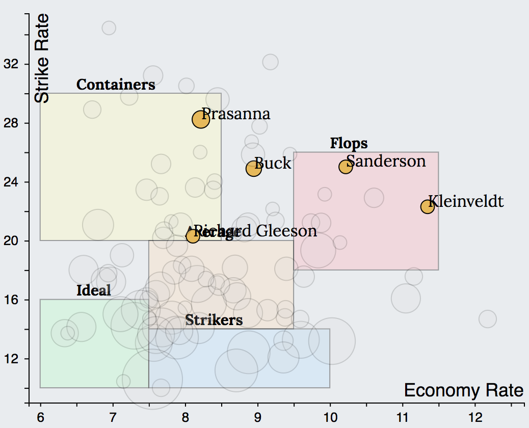 | Average | Bowlers who pick up fair number of wickets at reasonable economy rates. These are the bowlers a captain can bank on and expect them to be consistent and not concede too many runs. | Kuldeep, Kaul |