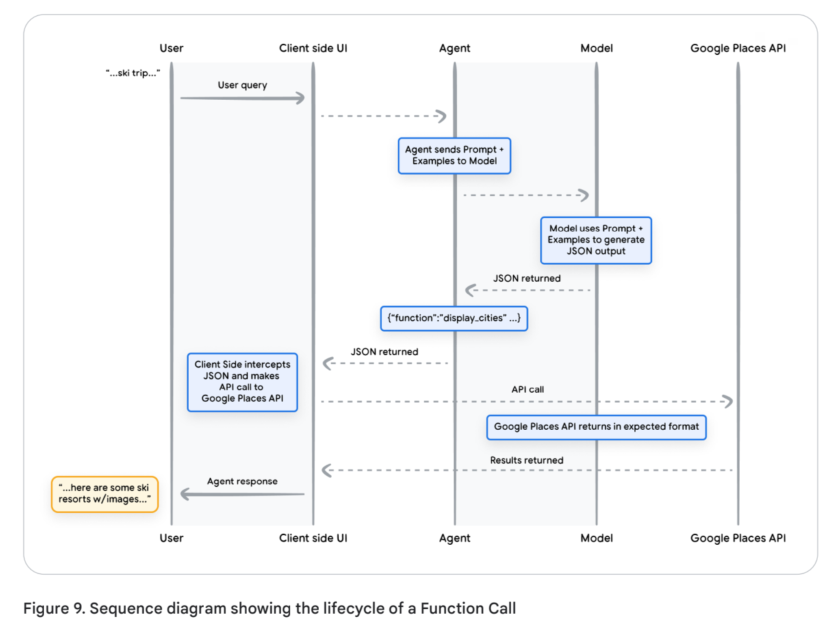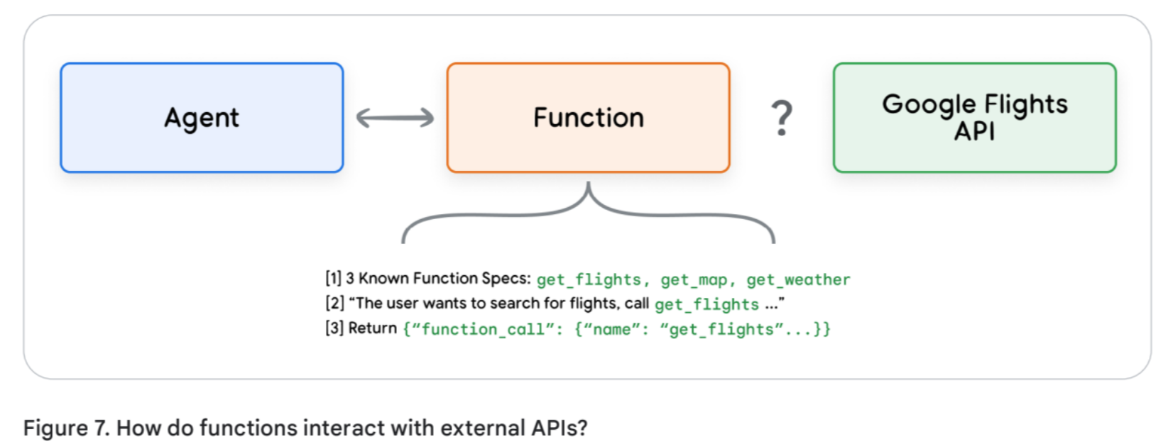 - Functions (Client-Side Execution): In this pattern, the model outputs a structured request (e.g., a JSON object) specifying which function to call and with what arguments, but it does not execute the call itself. The logic for executing the API call is offloaded to the client-side application. This provides more granular control and is ideal for scenarios with security restrictions, batch operations, or when API calls need to be made from a different layer of the application stack.