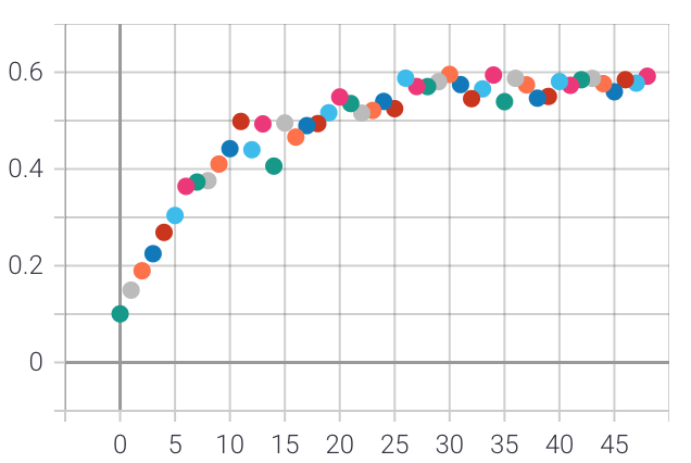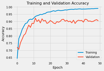 Learning Curves Observation: Both training and validation accuracy improves over the early epochs and then saturates. However a reasonably significant gap is observed between the two curves even after many epochs. This suggests that perhaps there is still some overfitting in the model and in order to